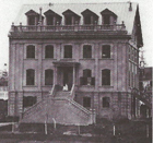 The central section of St. Ann's Academy, constructed in 1871, was the first four-storey masonry building in Victoria. Designed by Joseph Michaud, C.S.v, and built in red brick by Charles Vereydhen, it featured neo-classical detailing such as pilasters, a balustraded parapet and a pedimented gable roof, and was finished with grey, sand-embedded paint to resemble stone.